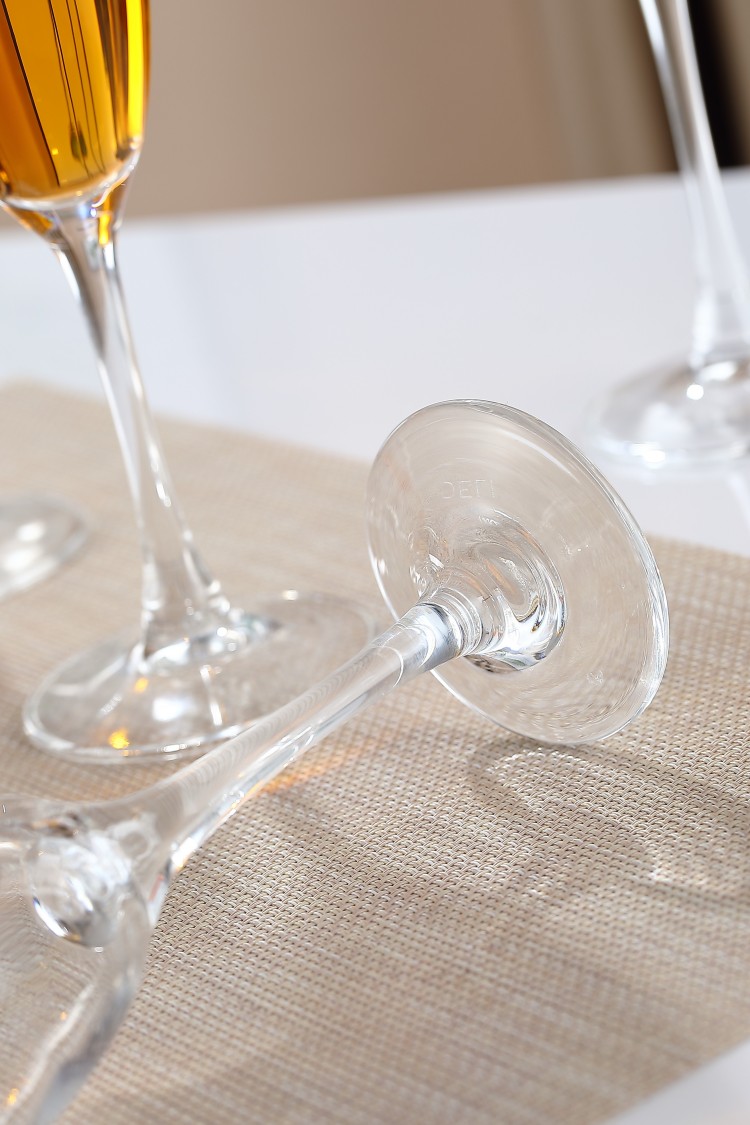 Elegant stemless crystal glass with a classic flute design, crafted for champagne and red wine. Made from high-quality machine-pressed glass, it features a 190ml capacity, 223mm height, and weighs 190g. Perfect for parties, household bars, or gifting.